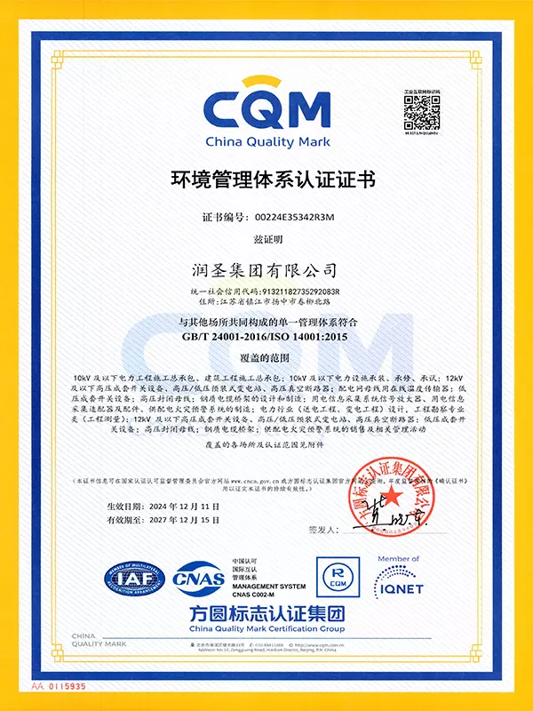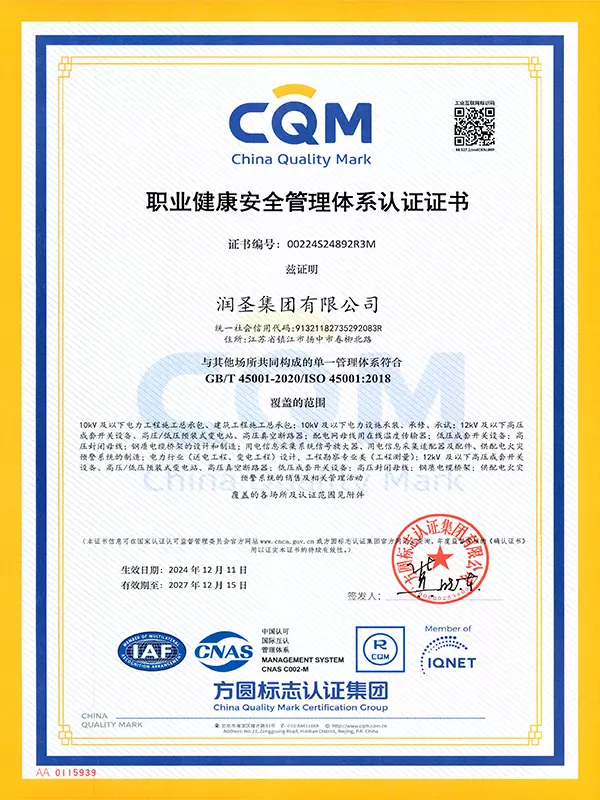 润圣自创立以来,秉承 “以技术创新、以质量求生存、以服务求发展。” 致力于诚信和客户满意度,我们提供高-严格的ISO9001质量管理支持的标准电力电气产品 (自2003年起获得认证)、ISO14001环境管理、OHSAS18001职业健康安全体系 (自 2009 年以来均获得认证)。